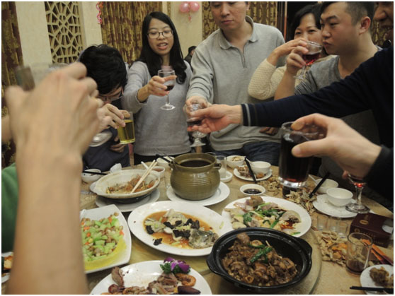 美味佳肴又怎么能少了美酒相伴,來(lái),我們大家一起來(lái)走一圈,舉杯,干了~~~~
